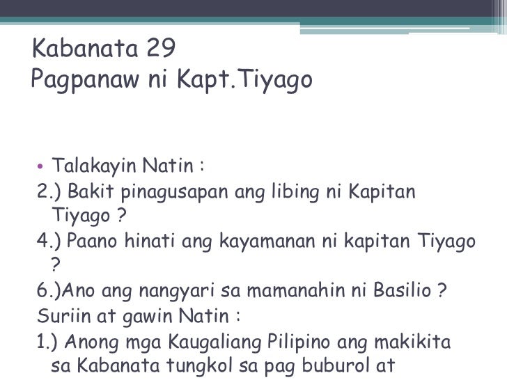 Tawanan at Iyakan Biyernes Marso 3 2017. El Filibusterismo kabanata 25 tagpuan at mahahalagang pangyayari. Labing apat na binata mula sa indiyo hanggang sa kastilang taga espanya ang nangagtipon upang iraos ang piging na iminungkahi ni Padre Irene na ipagdiwang ang kapasyahang ginawa para sa pagtuturo ng wikang kastila.