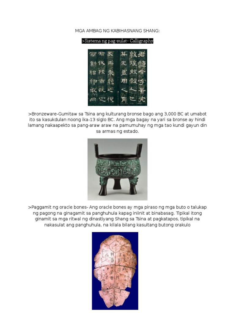 Ano ang mga ambag ng dinastiyang shang. Mga Ambag ng dinastiyang shang. Ano ano ang mga aambag ng kabihasnang indus at panahong vedic. Mga labi ng mga sulong na nagsasapin-sapin na lipunan na itinayo noong panahong Shang ay natagpuan sa Lambak ng Dilaw na Ilog.